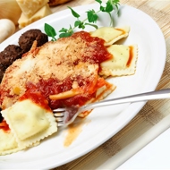 Preheat the oven to 392°F. Place the ravioli in a baking dish and pour the sauce over them. Sprinkle with grated cheese and pieces of butter. Bake for 20-30 minutes until the cheese melts and turns into a delicious crust.