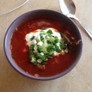 Shred the cabbage and add it to the broth. When the cabbage is almost ready (about 15 minutes), add the sautéed vegetables, bring to a boil, and add the peeled and diced (1–1.5 cm) potato.