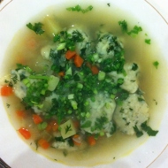 Transfer the dough to a bowl, add the eggs one at a time. Combine with the onion, garlic, and herbs. Using two teaspoons, form dumplings from the dough and drop them into boiling salted water. Cook for 3–5 minutes.
