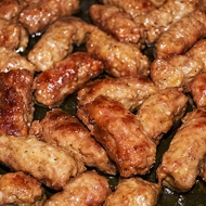 Pass the beef through a meat grinder, add one and a half teaspoons of salt and pepper to taste, mix thoroughly, and shape the mixture into small sausages about 5 cm long and approximately 2.5 cm in diameter. (You should end up with 28-30 pieces.)