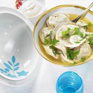 Dumplings are all the tastier when they are well coated with butter. It’s not about the quantity, but the right method. Once cooked, the dumplings should be transferred from the pot to a bowl with 10-15 grams of butter, and held briefly over the boiling broth while stirring the contents in a circular motion: the dumplings will be covered with a thin layer of butter. It’s best to serve these dumplings in a deep bowl with a lid, so they can soak a bit in the broth.