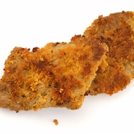 Sprinkle the pounded pieces of meat with salt and pepper, dip in beaten egg, and coat with breadcrumbs on both sides. Then place the meat on a hot skillet with oil and fry until fully cooked (10-12 minutes).