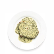 Let the meat rest for two to three minutes after taking it out of the oven, reheat the sauce, drizzle it over the steaks, and serve.