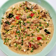 Serve hot in a deep plate, garnished with finely chopped green onion.