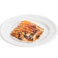 In a clean baking dish, layer the eggplant, then add the meat sauce, removing the bay leaf beforehand. Cover it with more eggplant, then top with béchamel sauce and sprinkle with grated cheese. Set the manual mode to the orange temperature level and cook for 20 minutes.