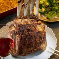 Beef Ribeye with Sweet Potato and Brussels Sprout Gratin