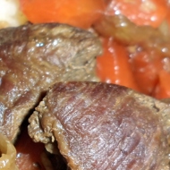 While the meat is marinating, dice the carrot and slice the onion into half-rings.
