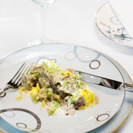 Trim the beef tenderloin of any membranes and slice it thinly, about 3–5 mm thick.