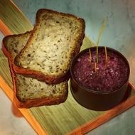 For the tapenade, you need to remove the pits from the olives, if they have them, and chop them very finely.