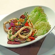 Combine all the ingredients. Add the green peas and dress the salad with the sauce.