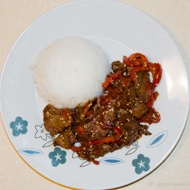 Beef with bell peppers in teriyaki sauce