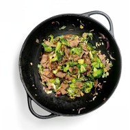As a side dish for this meal, you can serve plain rice, as well as rice noodles or egg noodles — they can be boiled and added to the wok right before the lemon juice and cilantro, mixed together with the meat and vegetables.