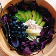 Beet Greens, Blueberry, and Tofu Salad with Honey Soy Dressing