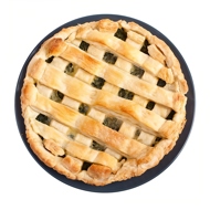 Dust the countertop with flour, divide the dough into two parts, and roll out the crusts. Place one on the bottom of a round baking dish and prick it with a fork. Add the filling on top and cover with the other layer of dough. Pinch the edges.