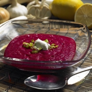 Before serving, place a little mint (12 chopped sprigs) at the bottom of each bowl, pour the soup into the bowls, and garnish with mint leaves.