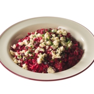 Lenten and vegetarian dishes should be appealing to ease the sadness of voluntary austerity. Beetroot risotto is just such a dish—simple but beautiful and vibrant. The risotto is prepared in the usual way: just combine the rice with sautéed cubes of beetroot, stirring constantly in the pot while gradually adding broth, and wait until the grains reach an al dente consistency and turn a uniform crimson color. In the end, the risotto is generously topped with crumbled tofu, previously marinated in lemon and garlic. The stereo effect lies in the fact that the flavors of the red rice and the snow-white tofu come together only in your mouth: a creamy texture, a hint of beetroot sweetness, a barely perceptible garlic note, and a fragrant aroma of citrus zest.