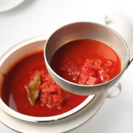 Meat broth is made from beef bones with the addition of onion, carrot, celery, parsley, green onion, and bay leaf. A piece of horseradish can be added. The finished broth should be strained, cooled in the refrigerator, and all the fat removed before straining again. There should be no visible fat floating on its surface.