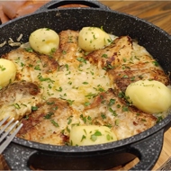 5 minutes before serving, add the boiled potatoes and sprinkle with herbs.