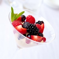 When it comes to serving, take out the cream, thin it out a bit with cream, whisk it, and serve with berries.