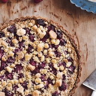 Grease a baking dish with butter and spread the berry mixture on the bottom. Evenly distribute the flour mixture over the berries. Bake for 25-30 minutes at 356°F until golden brown.