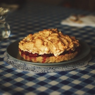 If you are using frozen berries, rinse them with hot water. Let the water drain. Mix the starch and powdered sugar and sprinkle this mixture over the berries. Gently stir. Spread the filling over the base and bake in the oven for 5–7 minutes.