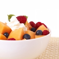Add the diced cantaloupe and berries. Gently mix and serve.