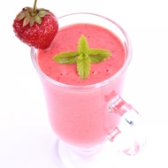 In a blender, combine the berries, peeled and chopped banana, apple juice, and tofu.