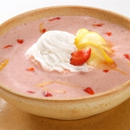 Place a scoop of ice cream in the center of each deep plate and gently pour the soup around it. Sprinkle with the remaining berries and serve immediately.