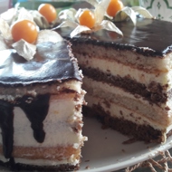Layer the cakes with cream, placing the dark layer on the bottom and the light layer on top.
