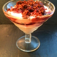 In a dessert dish, layer the yogurt, warm cherries, and granola. Repeat all layers.