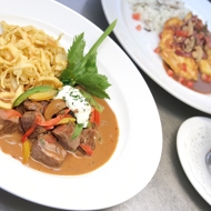 Add the meat along with the carrots and onions to the pot, stir, and simmer on low heat for 10 minutes. Add salt and pepper, as well as parsley and chervil leaves to taste.