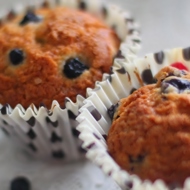 Fill the muffin cups halfway with batter. Add blueberries and gently press them into the batter. Top with the crumb mixture.