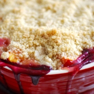 Mix a little water with the cornstarch until smooth. Add the fruit mixture. First layer the fruits, then the crumble topping. Bake until golden brown.