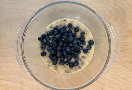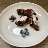 Remove from the oven, cut into cookies, and let cool. Serve chilled, optionally dusted with powdered sugar and garnished with blueberries.