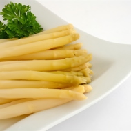 Rinse the peeled asparagus, tie it into a bundle (8-10 pieces), trim the ends evenly, and cook in salted water over high heat for 20-25 minutes. Asparagus is best when it is not overcooked; otherwise, it loses its flavor and becomes watery. As soon as the tips become tender, the asparagus is ready.