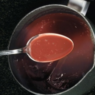 Strain the sauce through a fine sieve into another saucepan. Place it over heat. Divide the butter into five or six pieces and add them one by one to the wine, gently swirling the saucepan over the heat after each addition until the butter is fully melted.