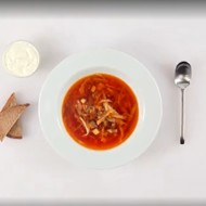 Borscht is not just a dish, but also a form of expressing religious feelings through food. It serves as a means of distinguishing Eastern Slavic peoples while simultaneously being something that unites all these nations. The question lies purely in the epithets. However, the most important aspect of any borscht is not its national affiliation, but whether it is delicious or not. This recipe can be considered basic: meat broth, beets with tomato paste, and fresh shredded cabbage added at the end.