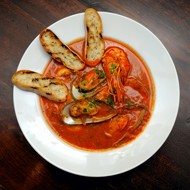 Bring the broth remaining from boiling the mussels to a boil, and add the diced potato.