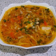 Borscht with Pork Shoulder, Red Bell Pepper, and Parsley
