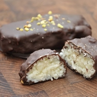 Melt the chocolate in a double boiler and dip each log in it.