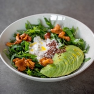 Bowl with Chanterelles, Avocado, and Flax Seeds