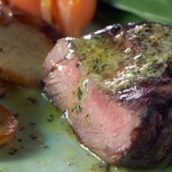Reduce the heat and cook for another 2 minutes, then add the parsley. Season with salt. Cut the meat into pieces and drizzle with the sauce.