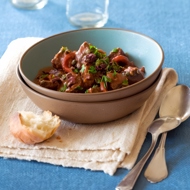 Add the meat to the pot, stir, bring to a boil, reduce the heat, cover the pot, and simmer for about 1.5 hours, stirring occasionally and checking the meat's doneness.