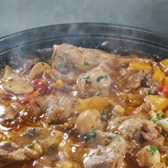 Heat the vegetable oil and fry the rabbit on both sides. Add a lot of chopped garlic.