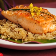 Braised Salmon with Carrots, Leeks, Soy Sauce, and Brown Rice