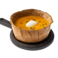 Grease a clay pot or another heatproof dish with vegetable oil. Place the dough in the pot, pressing it firmly against the sides, and trim off any excess.
