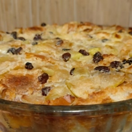 This recipe is great for using up yesterday's bread. The addition of apples adds a tangy flavor, while raisins add sweetness. If desired, it can be served with ice cream or cream. If the pudding is left to soak overnight, you can delight your family with a warm dessert in the morning. Pudding is a wonderful complement to morning coffee.