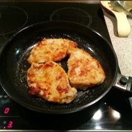 After cracking the egg and pouring the flour into a shallow plate, coat the pieces of meat in the egg, then in the flour.