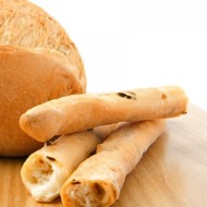 Roll out the dough into a rectangle measuring 25x30 cm. Sprinkle with olives and rosemary, and lightly press into the dough by rolling over it with a rolling pin. Cut the dough in half lengthwise and brush with olive oil. Cut crosswise into strips about 2–2.5 cm wide and let sit for 5 minutes.