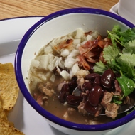 Ladle the soup into bowls, add a handful of cilantro, chili pepper to taste, a heaping tablespoon of fresh chopped onion, and 50 grams of crispy, well-cooked bacon.
